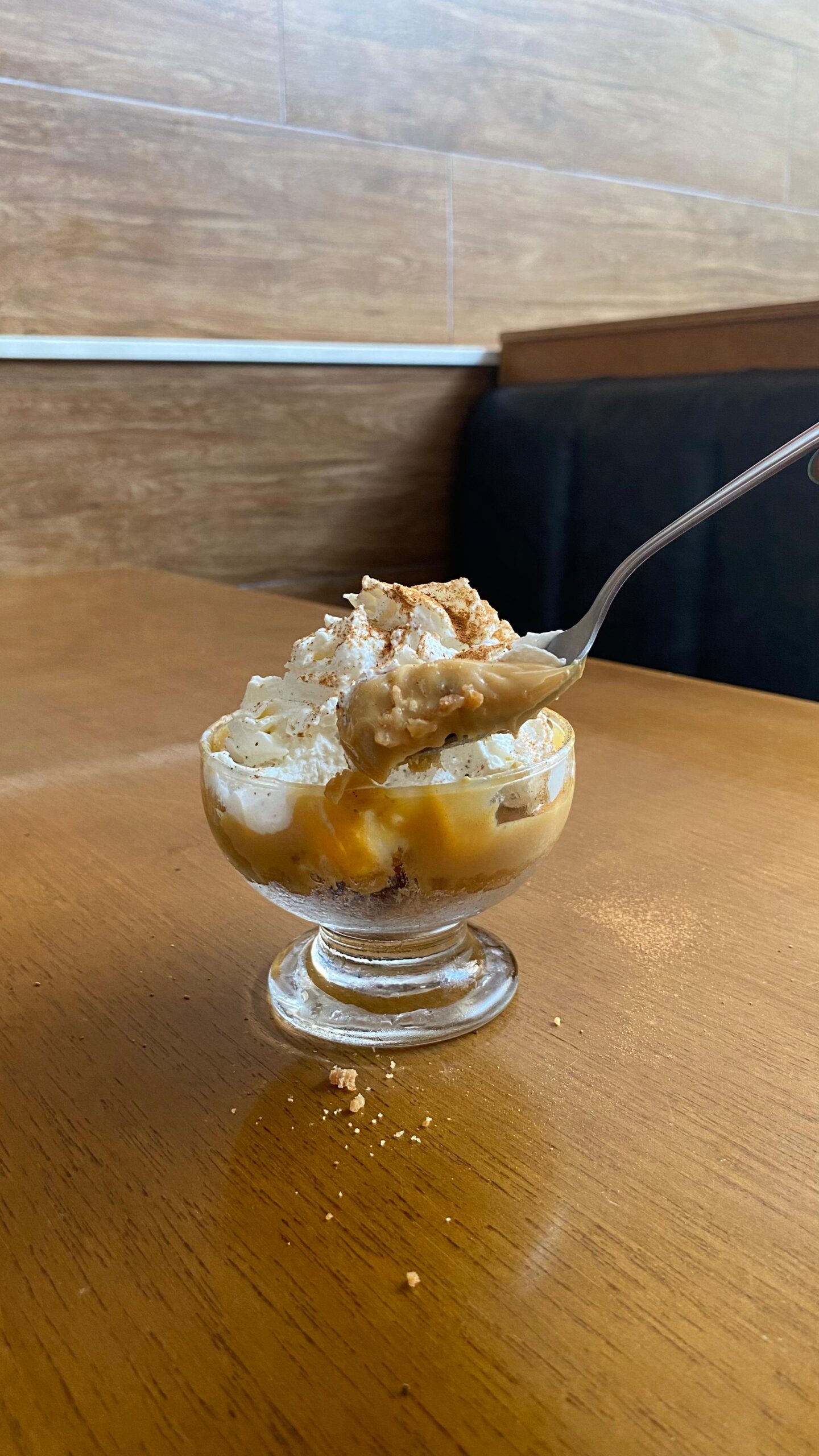 Deliciosa sobremesa em camadas com banana, doce de leite cremoso e base crocante, finalizada com um toque especial que deixa cada colherada irresistível.