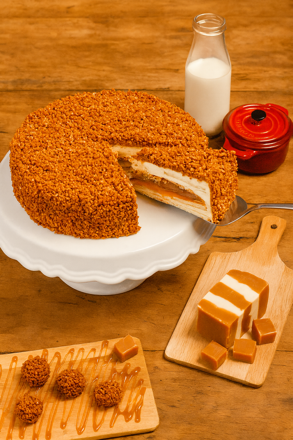 Torta crocante com caramelo e nozes *Imagem ilustrativa